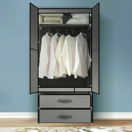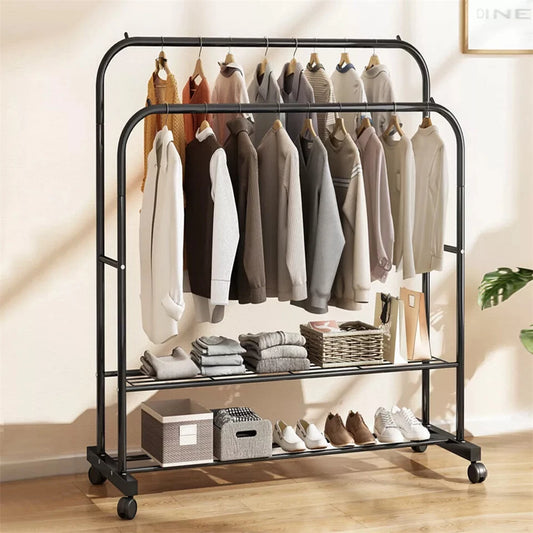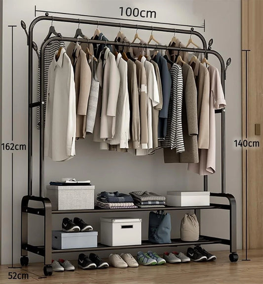 Heavy Duty Wooden Clothes Rail Rack Wardrobe w/ Wheels