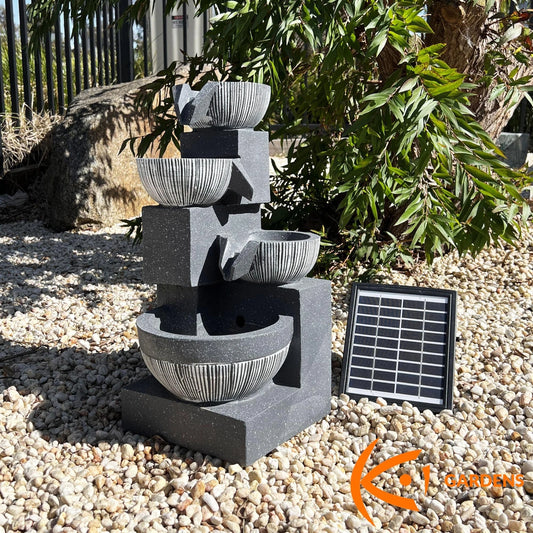 Garden Solar Water Fountain 4 Tiers Bird Bath with LED Light Outdoor 48cm