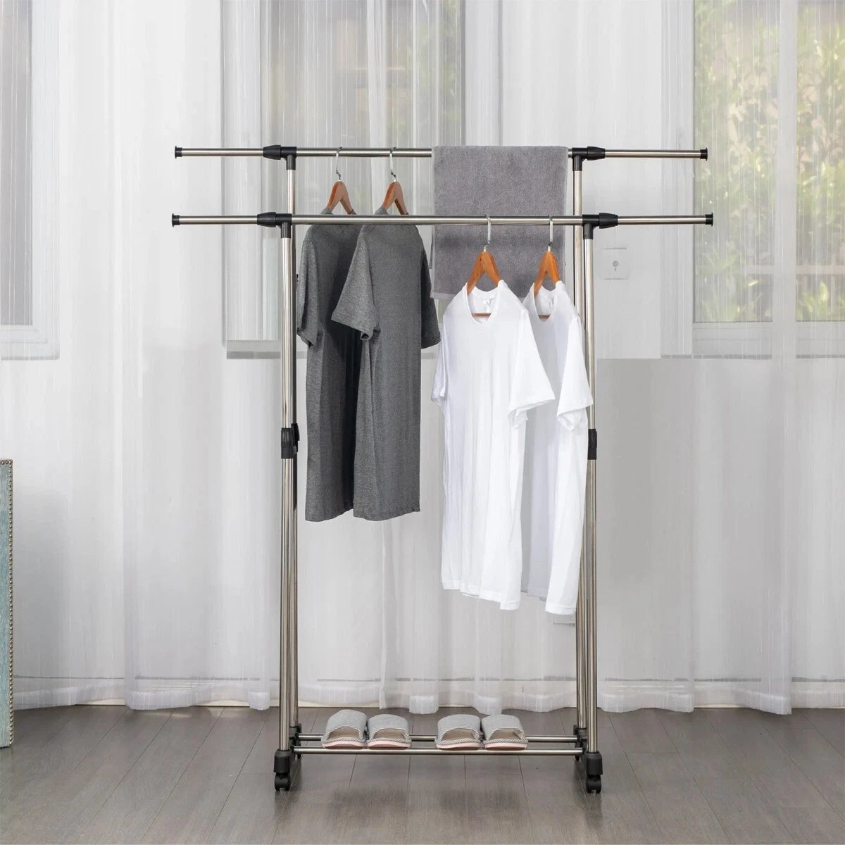 Adjustable Double Clothes Rack Stainless Steel