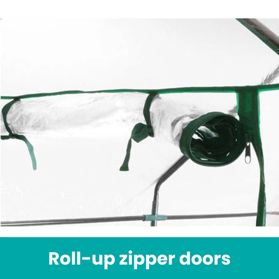 Featuring a full-length zippered door, this mini greenhouse allows easy access to all shelves for watering, trimming, or rotating your plants. The roll-up function promotes airflow, helping to prevent mold, mildew, and overheating — essential for healthy plant growth.
